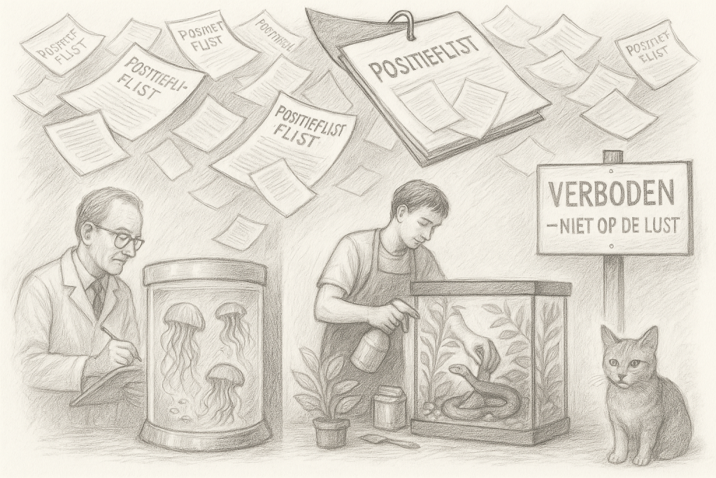 Onze huiswetenschapper bij Stichting Animalia, Dr. ir. A. van der Meijden, schreef een genuanceerd en diepgravend artikel over de zogenoemde positieflijst — een lijst die bepaalt welke diersoorten in Nederland als huisdier gehouden mogen worden. Vanuit zijn jarenlange ervaring als bioloog, dierenhouder en onderzoeker reflecteert hij op de vraag of het welzijn van dieren werkelijk afhangt van de soort, of juist van de mens die voor ze zorgt.