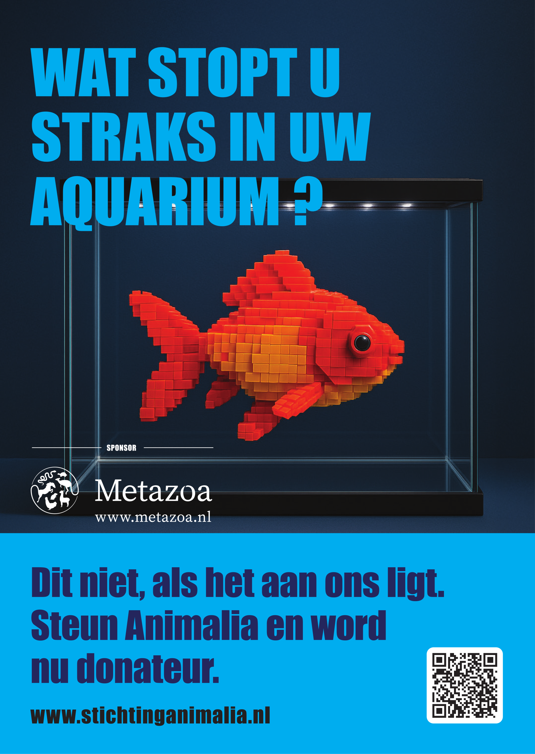 Poster: “Blijven alleen knuffeldieren dan nog over?” Goudvis