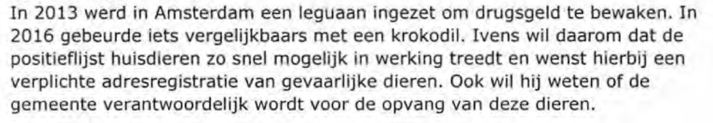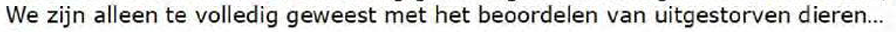 Met andere woorden, “We willen het beoordelen van veel gehouden soorten inkorten want dit zijn er best veel, maar we zijn ook de dodo en tyrannosaurus rex aan het beoordelen of hij wel of niet op de positieflijst komt….” Hoe kun je nou überhaupt te volledig zijn met het beoordelen van uitgestorven dieren?